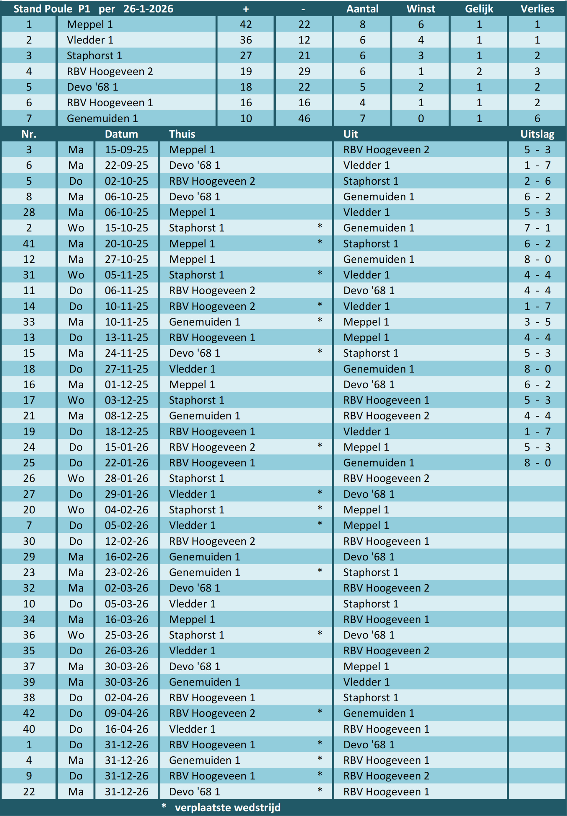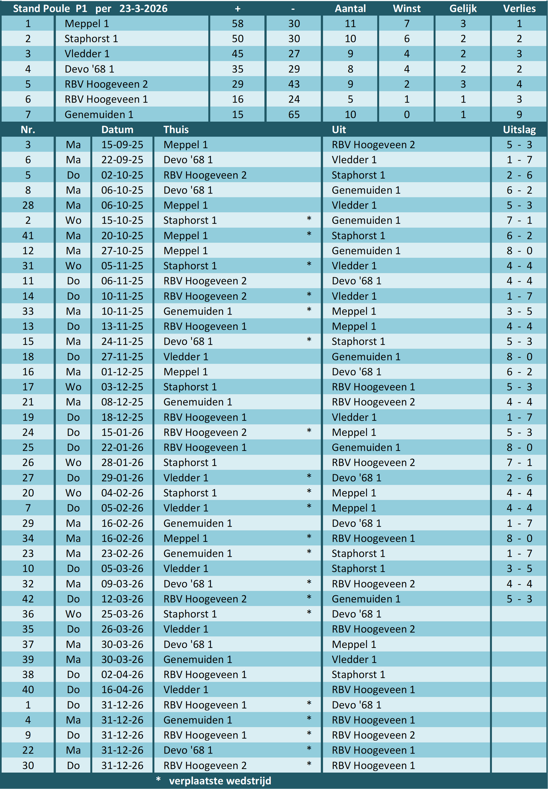 van poule P1 (25/26)