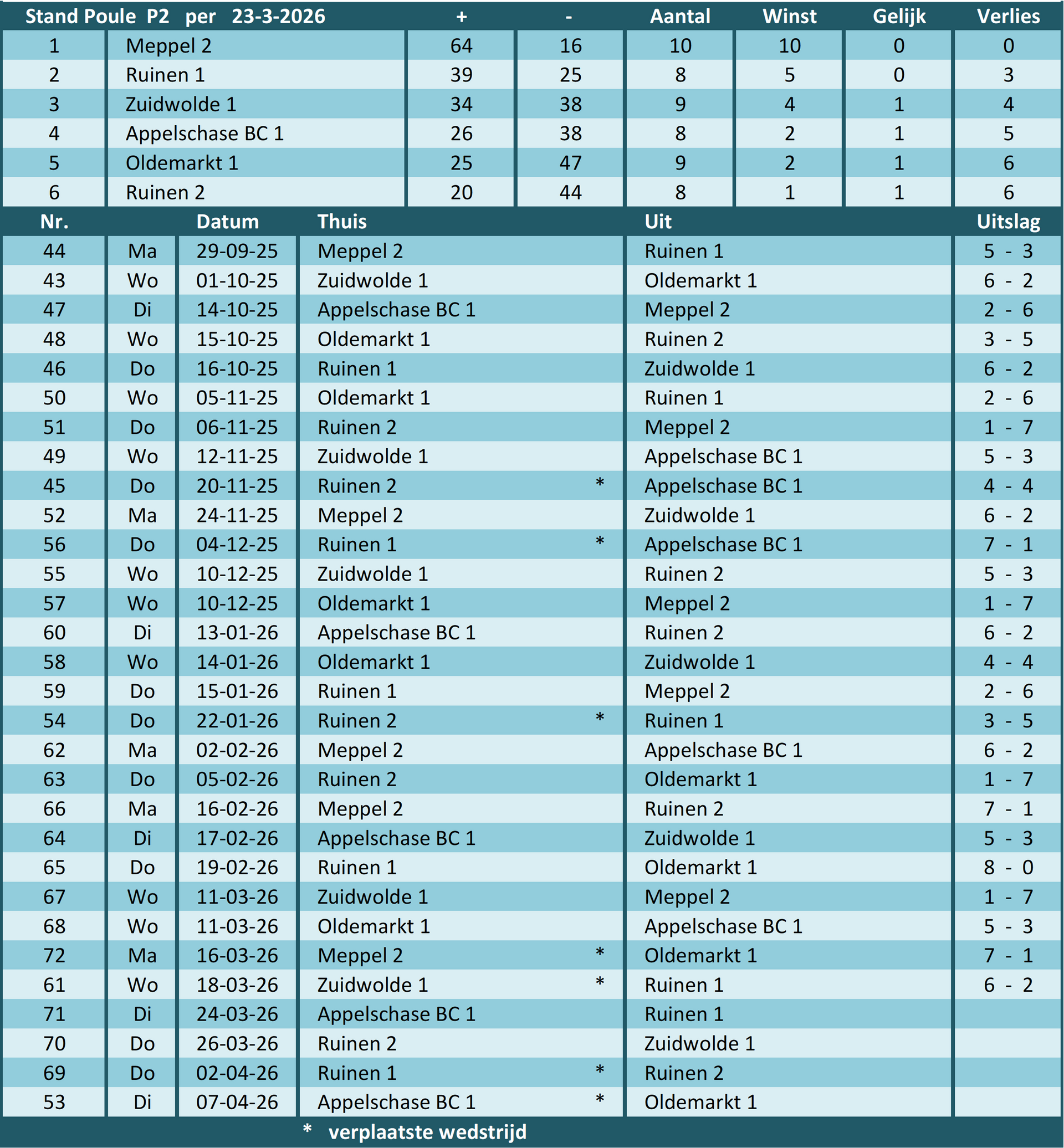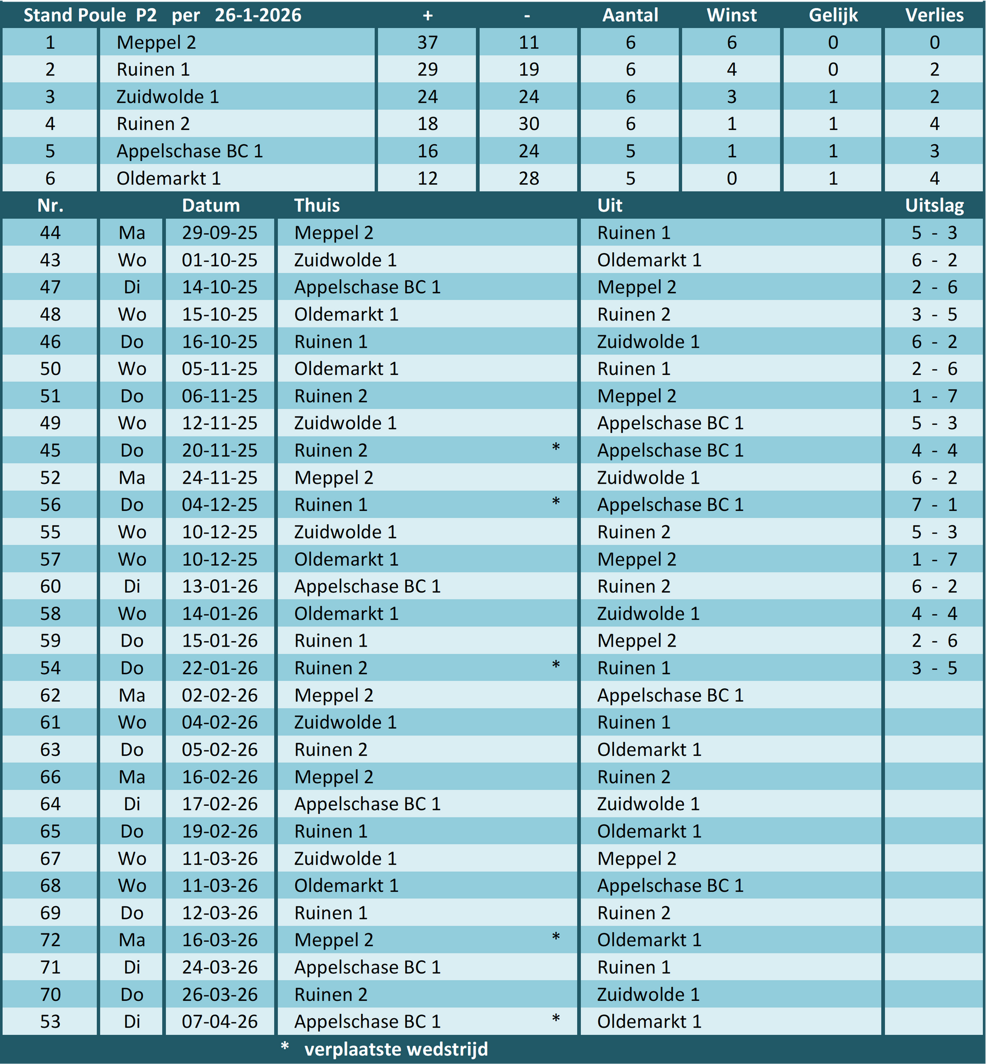 van poule P2 (25/26)