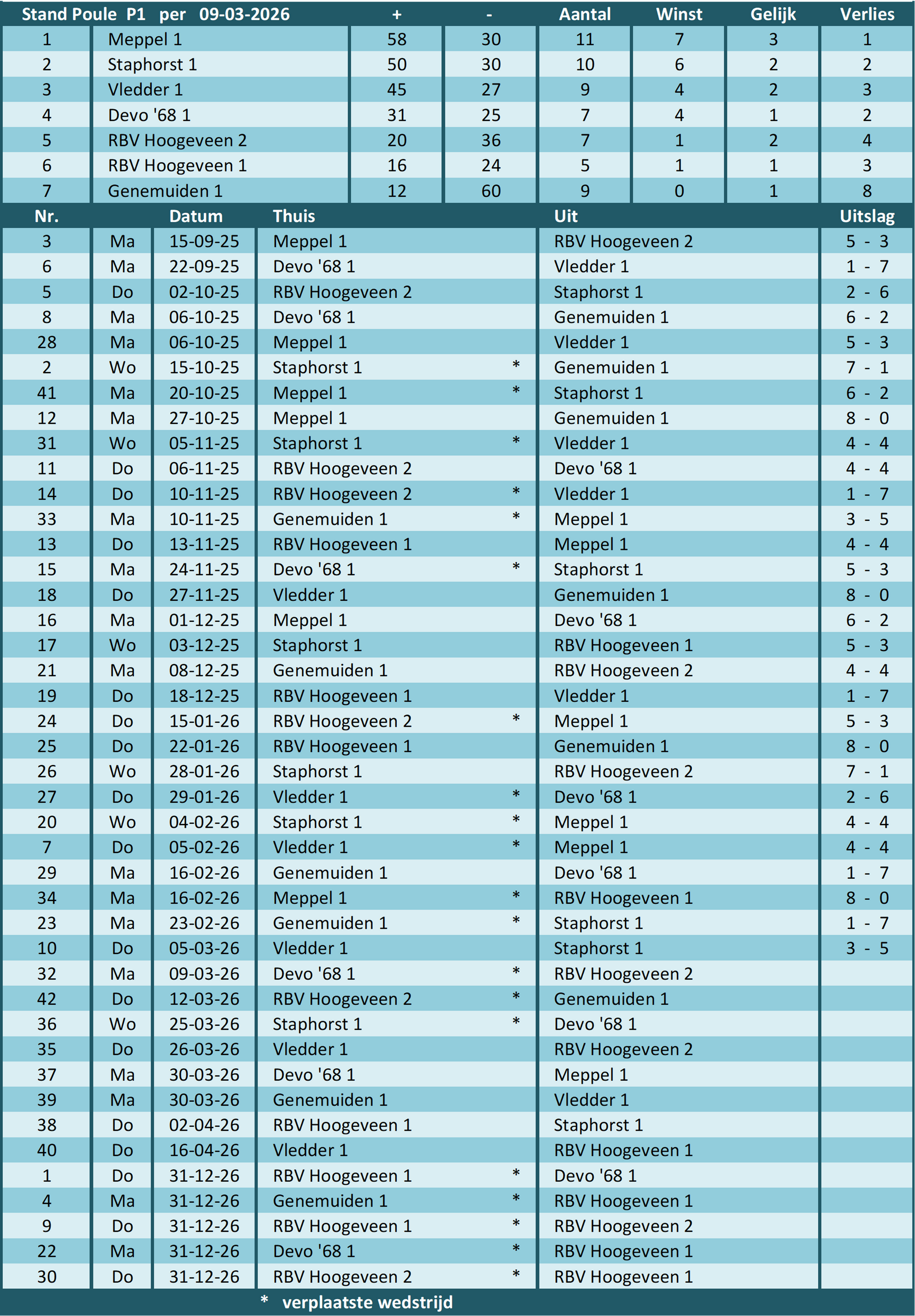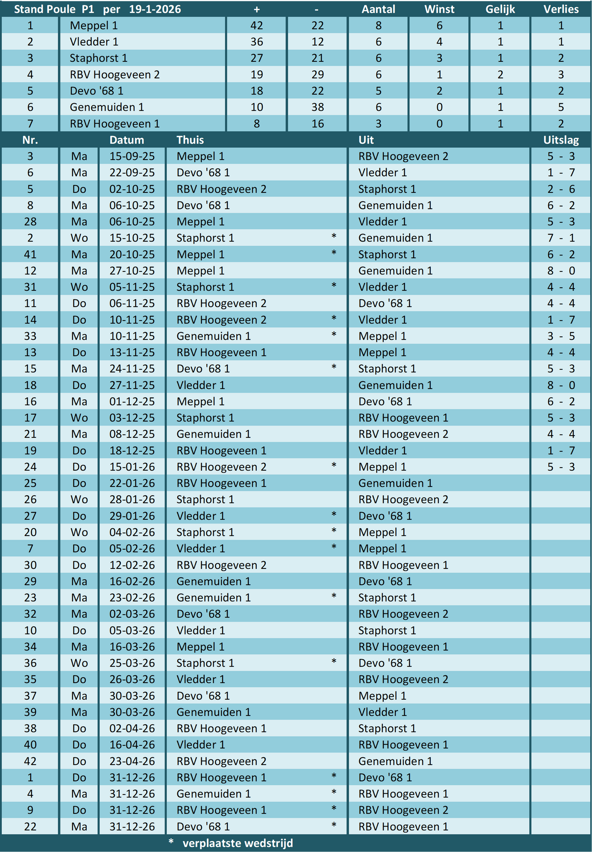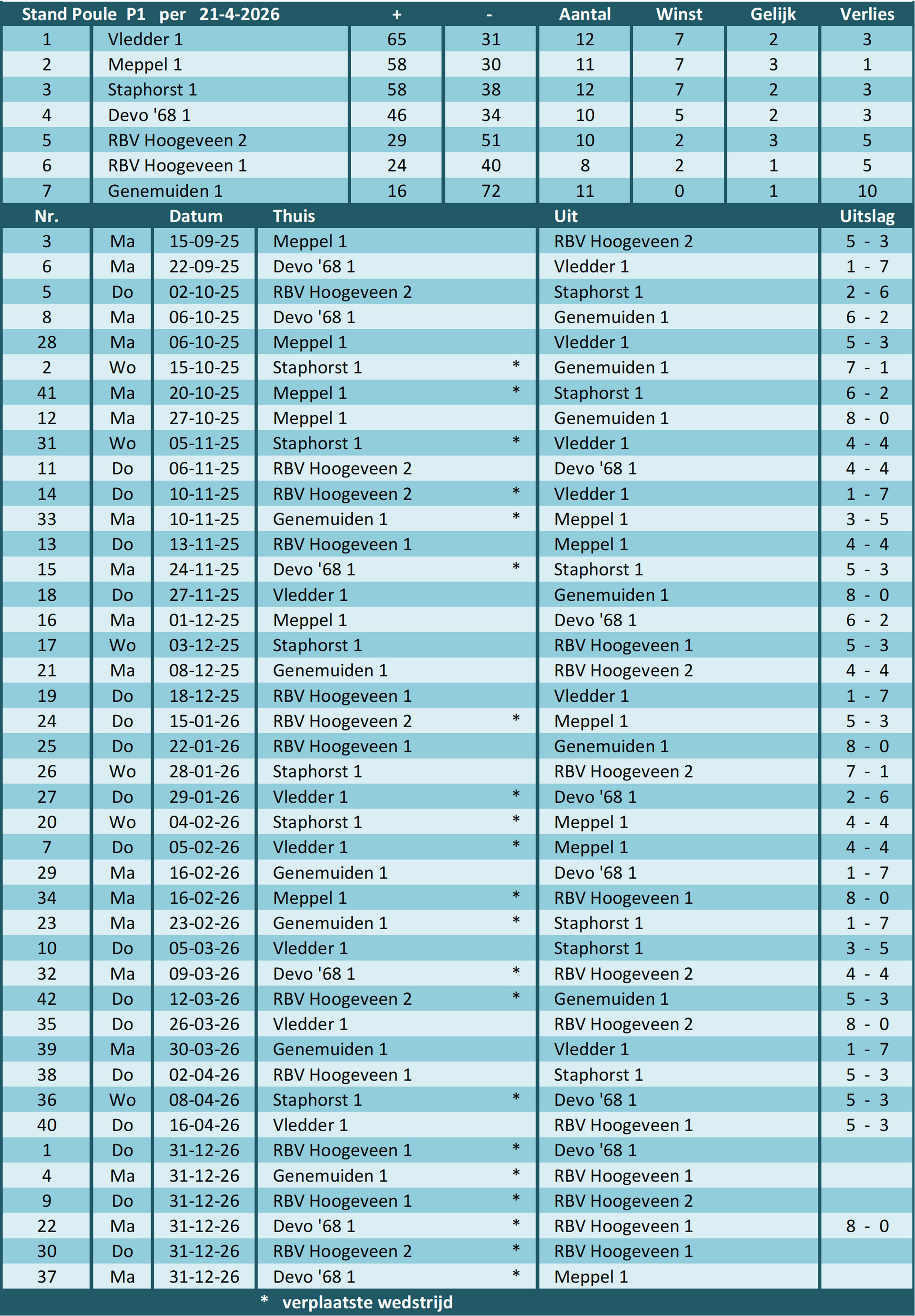 van poule P1 (25/26)